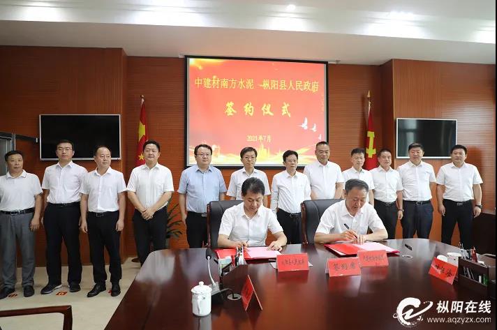 中國建材股份有限公司副總裁、南方水泥有限公司黨委書記、總裁肖家祥,縣領導楊如松、楊秀頎、楊賢招、梁鍵、左敬東、黃海龍,中建材新材料有限公司董事長、樅陽南方材料有限公司董事長王盛偉,安徽節源環保科技有限公司總經理徐四海,縣政府黨組成員榮光杰、李友好等出席儀式并見證簽約。