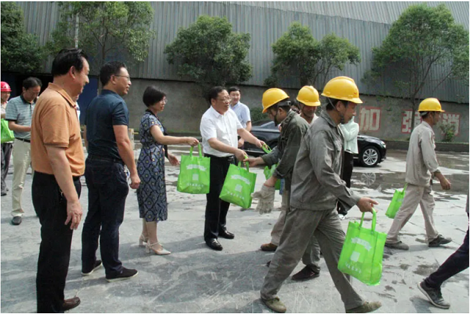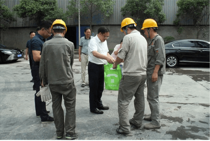 在集團董事長、總經理閆友平陪同下,湯明來到花林水泥公司生產區(qū),把裝有防暑降溫物品的“清涼禮包”送到職工手中,并向所有奮戰(zhàn)在一線的職工致以親切的問候,對他們?yōu)檫h安經濟社會發(fā)展所做的貢獻表示感謝。