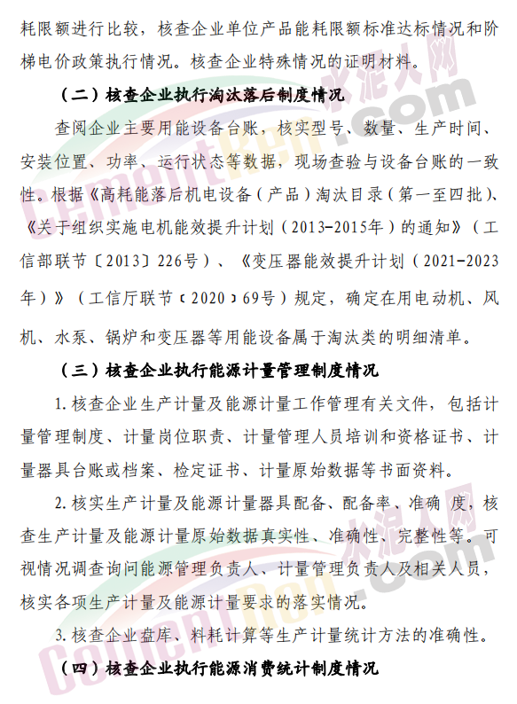 (一)強化責任落實。各地工業和信息化主管部門要將節能監察作為落實《中華人民共和國節約能源法》和《工業節能管理辦法》、持續推進工業綠色高質量發展、助力碳達峰碳中和目標實現的重要手段,對照2020年重點工業行業綜合督查檢查中發現的問題和整改要求,進一步強化主體責任,完善工業節能監察體系,嚴格節能監察執法。按照專項監察工作手冊(附件2,可在工業和信息化部門戶網站自行下載),認真組織開展現場監察。