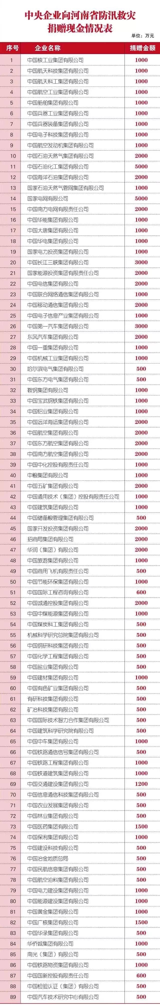 據國資委消息,國資委和中央企業全力支援河南省做好汛災搶險救援,進一步加大捐贈力度,截至7月22日19點,89家中央企業累計向河南省捐贈現金達10.44億元。