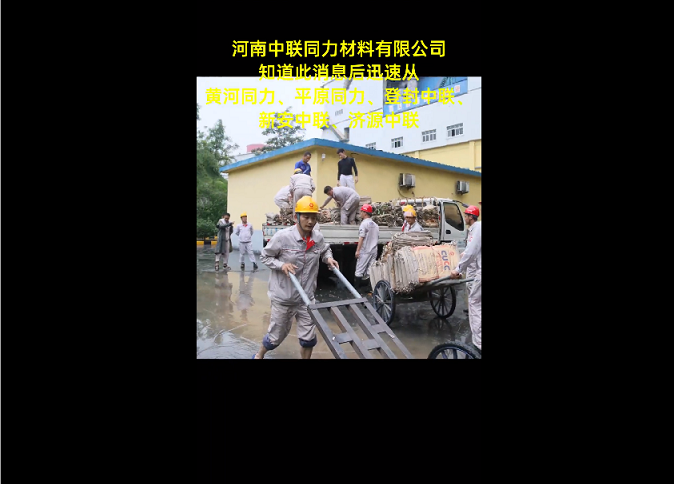 7月21日,得知鄭州市防汛抗旱指揮部,急需防汛裝沙編織袋的信息。根據中國聯合水泥防汛工作安排部署,河南中聯同力材料有限公司緊急組織登封中聯、新安中聯、濟源中聯、黃河同力、平原同力等企業,第一時間籌集抗洪物資