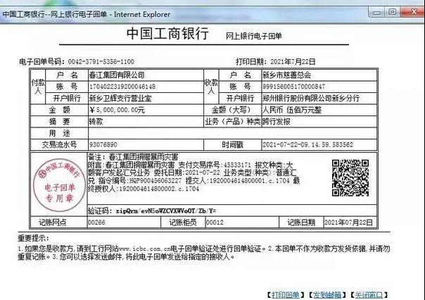 春江集團捐款500萬支援防汛:7月22日上午,“全國優秀共產黨員”輝縣市張村鄉裴寨村黨支部書記兼村委會主任、春江集團黨委書記裴春亮同志代表集團向新鄉市慈善總會捐款500萬元,用于防汛搶險救災。這是新鄉市慈善總會收到的第一筆防汛救災捐款。