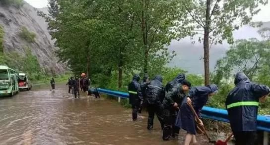 物資車隊面對途中瓢潑大雨,大部分道路阻斷,多處山體塌方及路面。50cm以上的積水,毅然堅定前行。