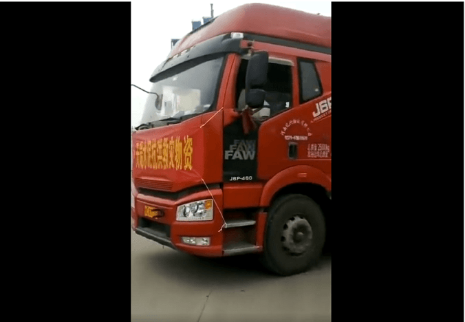 滿載包裝袋的捐贈車輛從黃石出發趕赴鄭州