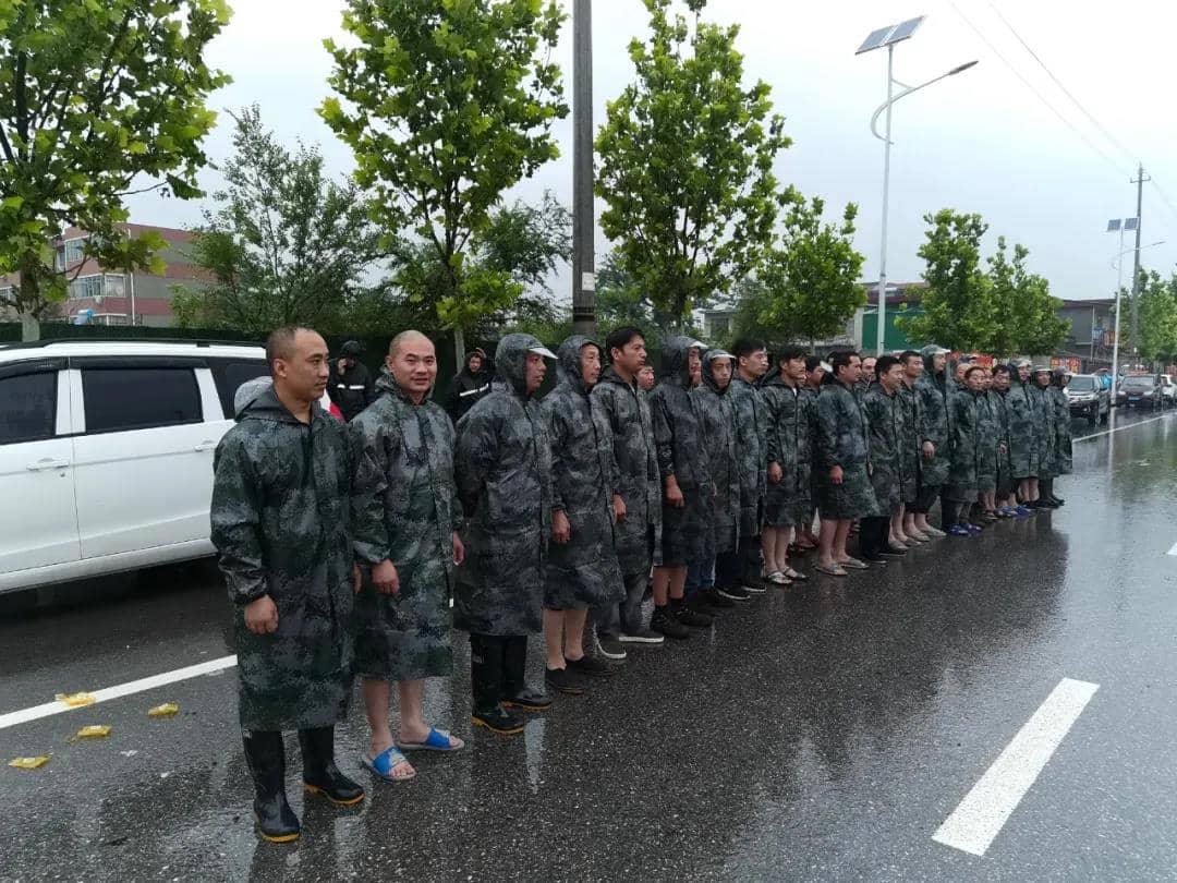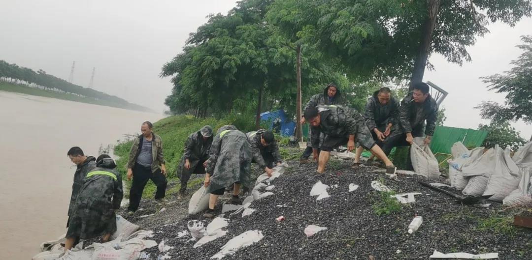 公司防汛工作領導小組、突擊隊員快速投入到搶險第一線,面對洪水義無反顧、冒雨而沖扛沙袋掄鐵鍬。