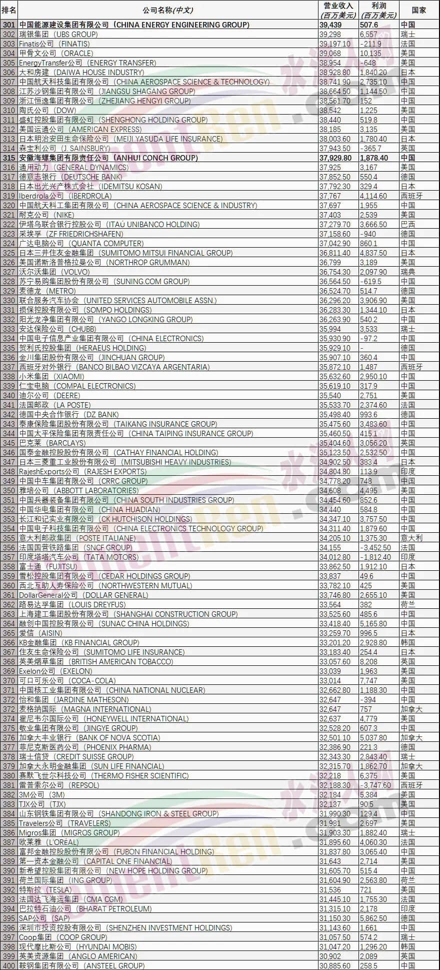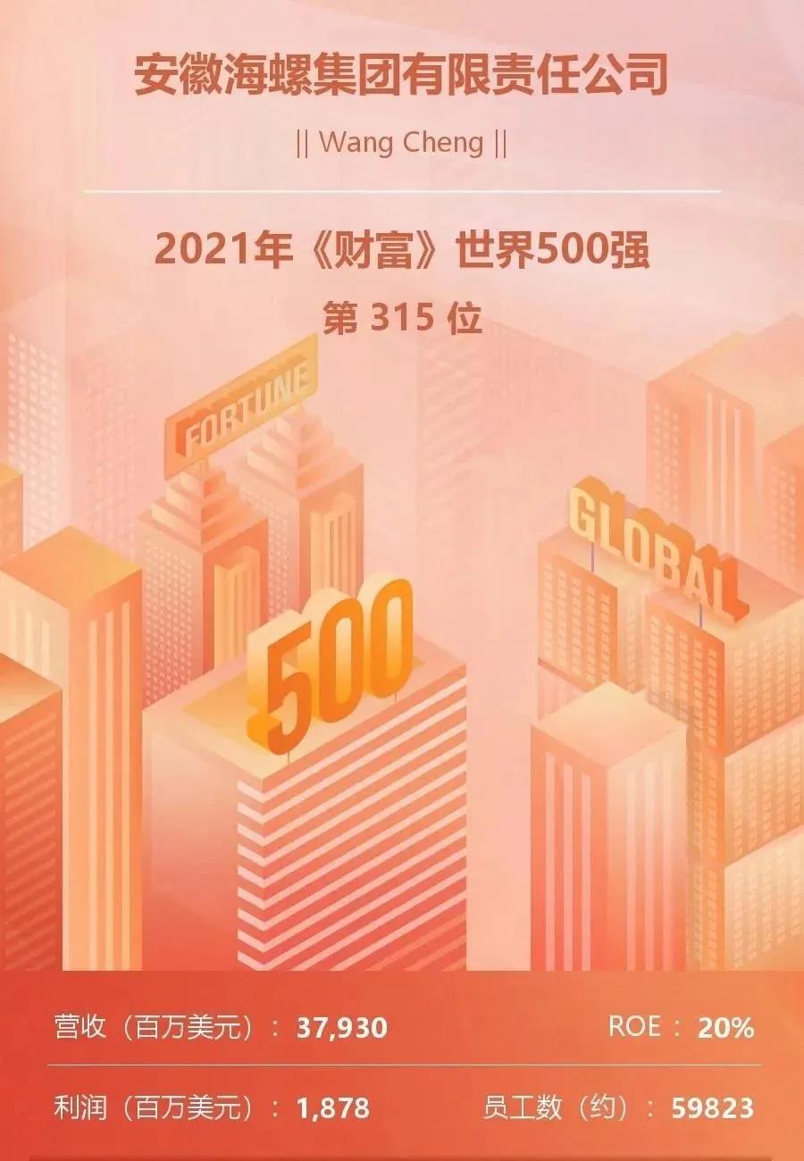 海螺集團以379.29億美元的營業(yè)收入位居第315位,連續(xù)三年進入世界500強,排名較上年大幅提升52位;