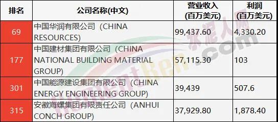 國內(nèi)企業(yè)經(jīng)營項目中包含水泥業(yè)務(wù)的上榜企業(yè)有:中國華潤有限公司;中國能源建設(shè)集團有限公司。上述四家企業(yè)排名、營業(yè)收及利潤如下表: