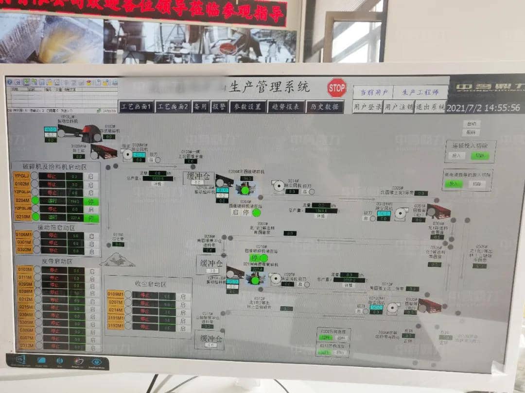 礦山生產(chǎn)管理系統(tǒng)對(duì)整條骨料生產(chǎn)線進(jìn)行自動(dòng)化遠(yuǎn)程控制和設(shè)備運(yùn)行狀態(tài)、工藝過程、料位信息的監(jiān)控和監(jiān)測(cè),以中控室為指令和調(diào)度中樞,實(shí)現(xiàn)整個(gè)工廠生產(chǎn)、銷售層面的集控與聯(lián)動(dòng)。