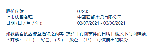根據聯交所最新權益披露資料顯示,2021年7月28日,西部水泥獲海螺水泥或其一致行動人在場內以每股均價1.1538港元增持306.2萬股,涉資約353.29萬港元。
