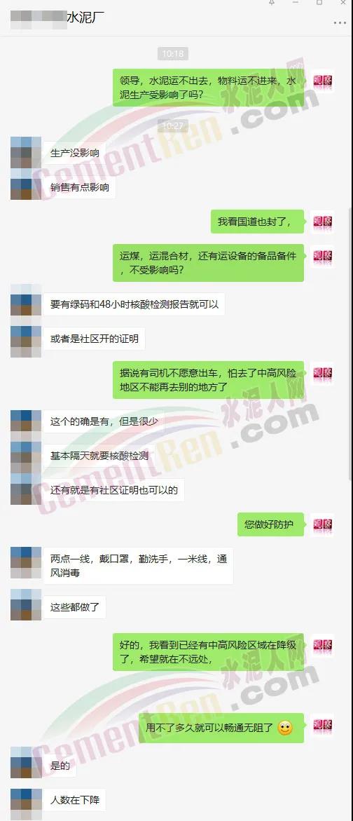 最近江蘇多地為防疫情擴散,采取部分路段封路及加強核酸檢測查驗的措施,造成多地水泥企業運輸受到一定的影響。有經銷商企業反應部分區域運費上漲了50%-60%,貨車司機也很難找,加上出不了貨,部分企業庫滿,已有個別企業計劃近期停限產。部分大廠前期有儲備物料,暫時對生產沒有大的影響,僅對銷售物流有些影響。