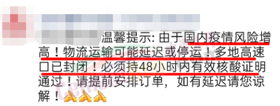 有司機表示“現在已經全員檢測!但是各地防疫政策不同,有些區域即便有行程碼、健康碼仍難通行,因為路已經被堵死或挖斷了,有相關證明也沒用。”