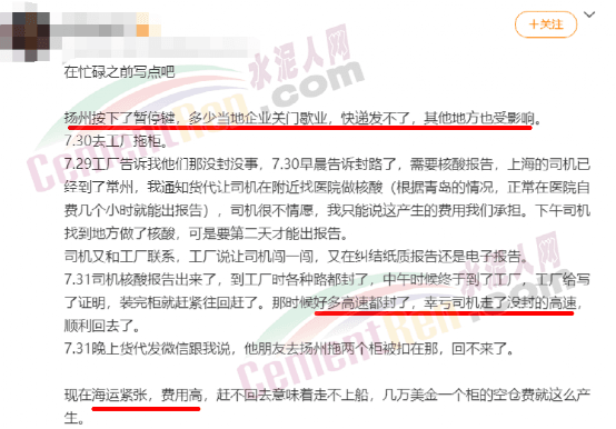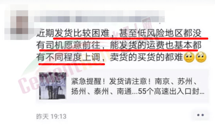 一水泥經銷商表示,水、陸運輸都因疫情或多或少的受到影響。水泥運不出去,物料運不進來,水泥銷售受到一定的限制。同時因部分物流司機不愿出車令物流市場車輛減少,運費價格大比例上漲。