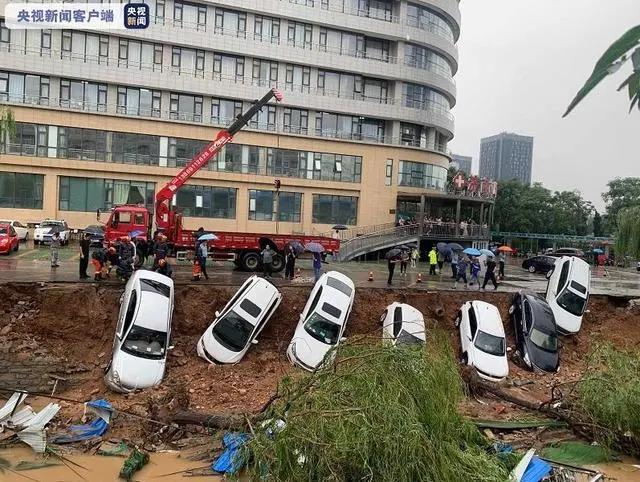 7月12日14時58分,受強降雨影響,山東省濟南市高新區一處靠近泄洪溝的路面突然出現大面積坍塌,停在路邊的十余輛車墜落排洪溝,所幸未造成人員傷亡。
