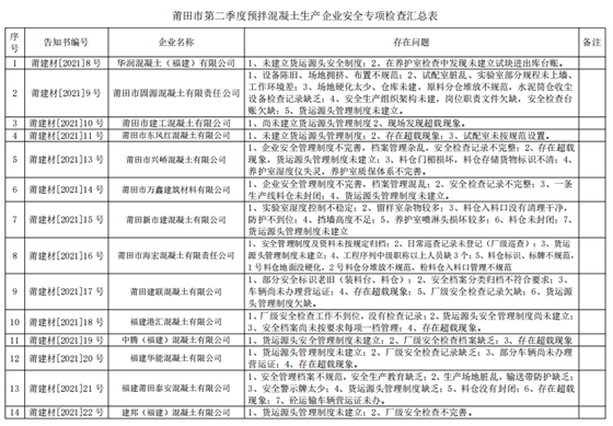 莆田公布預(yù)接拌混凝土專(zhuān)項(xiàng)檢查14家企業(yè)被通報(bào)