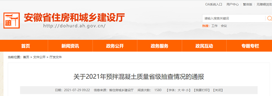 安徽省住房和城鄉(xiāng)建設(shè)廳發(fā)布《關(guān)于2021年預(yù)拌混凝土質(zhì)量省級(jí)抽查情況的通報(bào)》