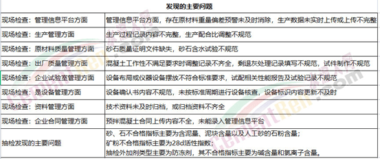 混凝土質(zhì)量的不合格不僅涉及施工階段,更多出現(xiàn)在混凝土生產(chǎn)領(lǐng)域和銷(xiāo)售市場(chǎng)。近期多省市自治區(qū)住建廳發(fā)布2021年預(yù)拌混凝土質(zhì)量省級(jí)抽查情況的通報(bào),涉及質(zhì)量控制體系、質(zhì)量抽檢、委托檢驗(yàn)、現(xiàn)場(chǎng)管理、監(jiān)管部門(mén)等多方面的問(wèn)題,甚至發(fā)現(xiàn)有混凝土生產(chǎn)企業(yè)檢驗(yàn)設(shè)備未檢定,部分試塊未檢驗(yàn),低強(qiáng)度等級(jí)混凝土進(jìn)入高強(qiáng)度等級(jí)混凝土構(gòu)件,職稱(chēng)人員證件信息與實(shí)際情況不符、第三方委托檢測(cè)時(shí)未按要求進(jìn)行檢測(cè)等問(wèn)題。