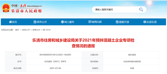 樂(lè)清通報(bào)2021年預(yù)拌混凝土企業(yè)專(zhuān)項(xiàng)檢查情況