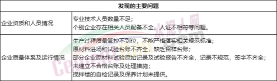 本次檢查中企業(yè)質(zhì)量保證體系運(yùn)營(yíng)情況及人員配備比較差的單位給予通報(bào)批評(píng):1、溫州銀龍建筑材料銷(xiāo)售有限公司;2、樂(lè)清市州際混凝土有限公司。