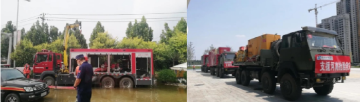在鄭州,救援隊連續12天在多個社區、自來水廠開展排澇作業,為鄭州百姓恢復生產生活秩序做出了突出貢獻。在新鄉衛輝,救援隊在災情最險的司灣泵站堅守10天9夜,特別是泵站機組被淹的情況下,作為當地唯一的排洪力量,連續排洪作業6天,累計排水超過100萬噸,占衛輝所有機械排水量的近四分之一,成為新鄉地區最早進駐的國家救援隊、工作時間最長的救援隊、排水最多的救援隊,在救援排澇和穩定民心過程中起到了關鍵作用。