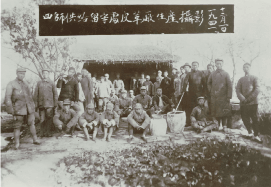 △1941年12月1日,皮革廠職工在江蘇省盱眙縣張樓村廠房前合影
