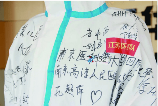 △104名援鄂醫護人員在公司生產的防護服上簽名留念