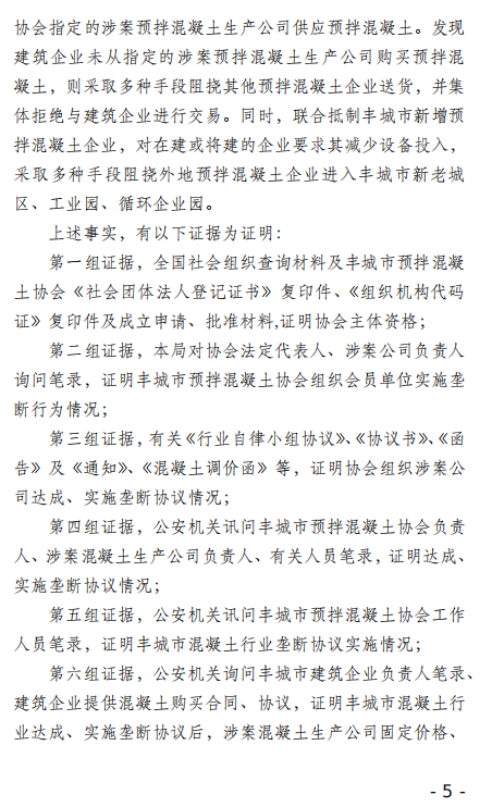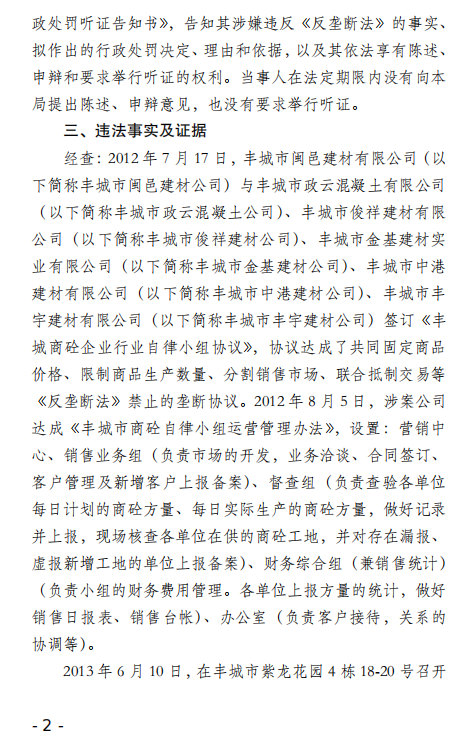 日前,江西省市場監管局發布《豐城市預拌混凝土協會及其會員企業壟斷協議案的處罰決定》根據公安機關移交線索,江西省市場監督管理局于2020年1月對豐城市預拌混凝土協會及其8家會員企業涉嫌壟斷協議行為立案調查。