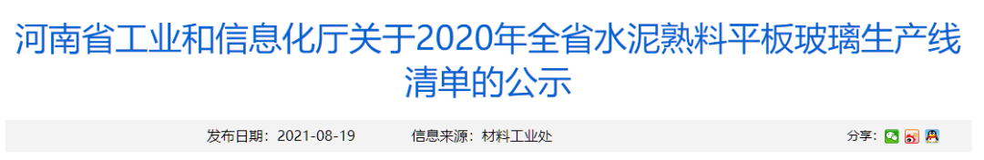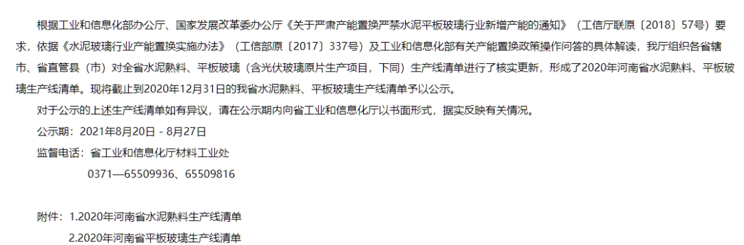 8月19日河南省工信廳發布全省水泥熟料生產線清單公示。公示文件稱,根據相關文件要求,河南省工信廳組織各省轄市、省直管縣(市)對全省水泥熟料清單進行了核實更新,形成了2020年河南省水泥熟料清單。