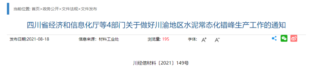 為深入貫徹工業(yè)和信息化部、生態(tài)環(huán)境部《關(guān)于進一步做好水泥常態(tài)化錯峰生產(chǎn)的通知》(工信部聯(lián)原﹝2020﹞201號)和《深化四川重慶合作推動成渝地區(qū)雙城經(jīng)濟圈生態(tài)共建環(huán)境共保工作方案》等文件精神,落實成渝地區(qū)雙城經(jīng)濟圈生態(tài)共建環(huán)境共保重點任務(wù),進一步減少大氣污染物排放,持續(xù)深入推進水泥行業(yè)供給側(cè)結(jié)構(gòu)性改革,促進水泥行業(yè)綠色低碳和高質(zhì)量發(fā)展,現(xiàn)就做好川渝地區(qū)水泥行業(yè)常態(tài)化錯峰生產(chǎn)工作通知如下: