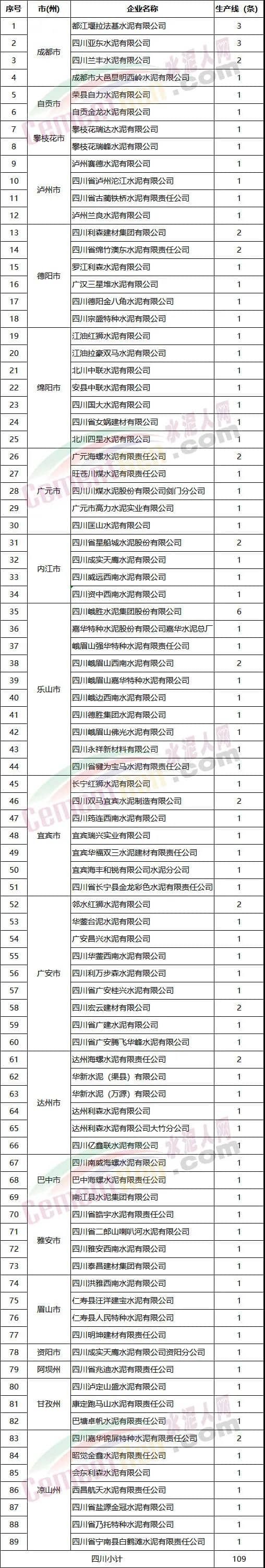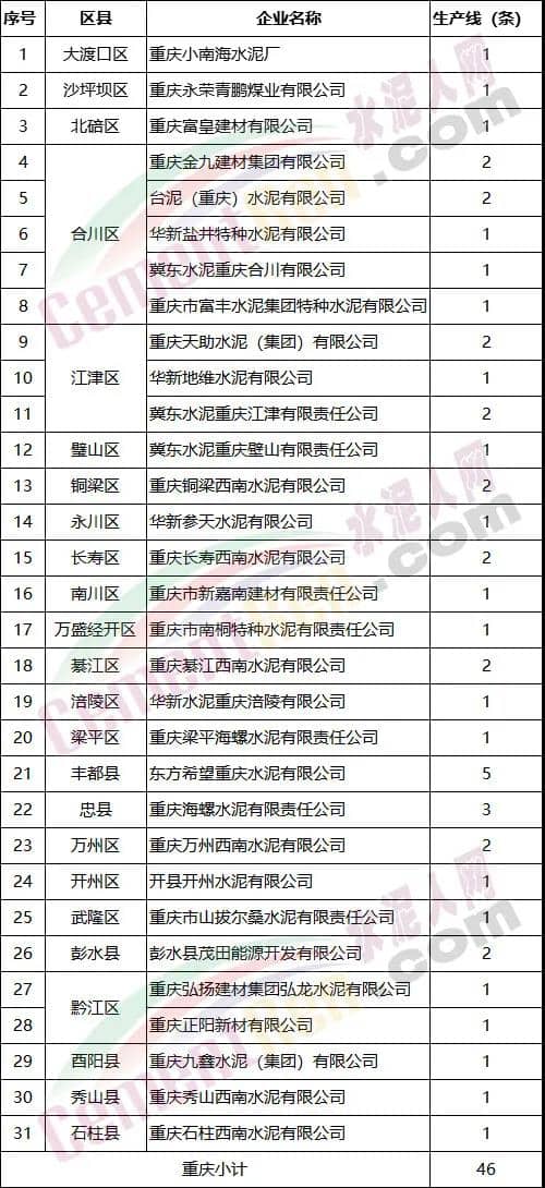 1.川渝地區(qū)水泥行業(yè)錯峰生產(chǎn)企業(yè)名單