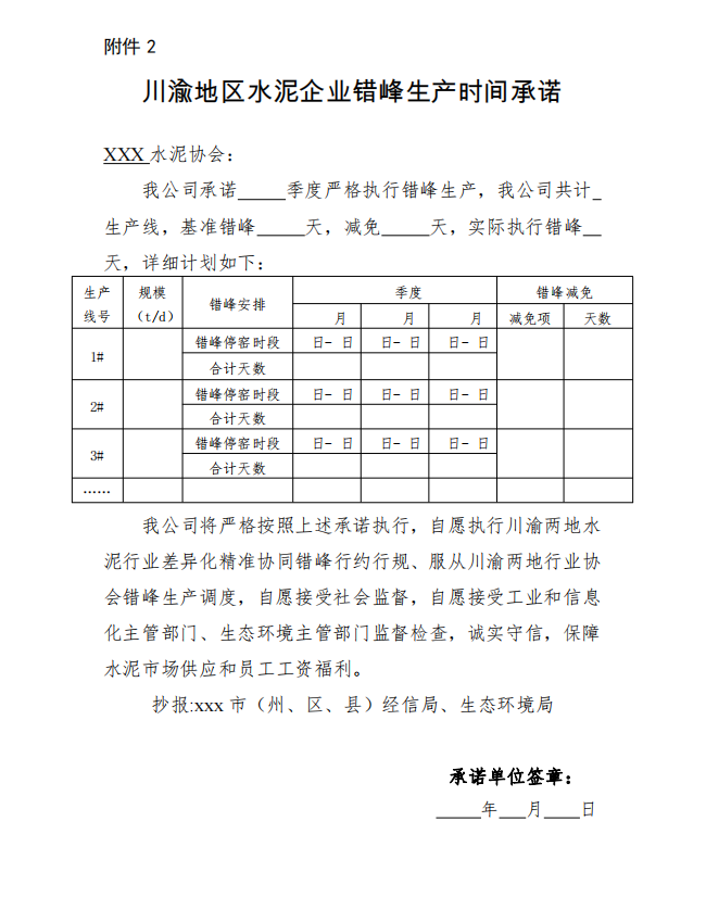 2.川渝地區(qū)水泥企業(yè)錯峰生產(chǎn)時間承諾