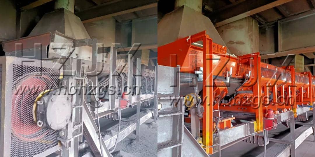 連云港賓鑫鋼鐵導料槽改造前(左)后(右)對比