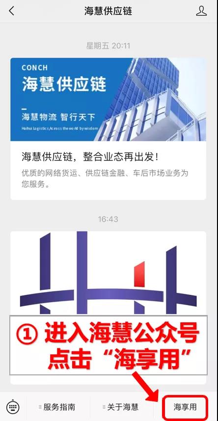 即日起,關注“海慧供應鏈”公眾號,在右下角點擊“海享用”,海螺水泥客戶專屬邀請碼注冊登錄,純線上化操作,手續便捷,核額速度快!