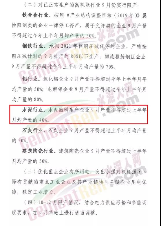 對已建成尚未投產的高耗能行業項目,暫不予安排生產;對已正常生產的高耗能行業9月份實行限產。