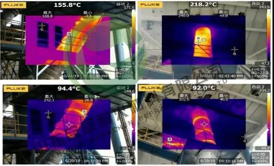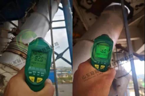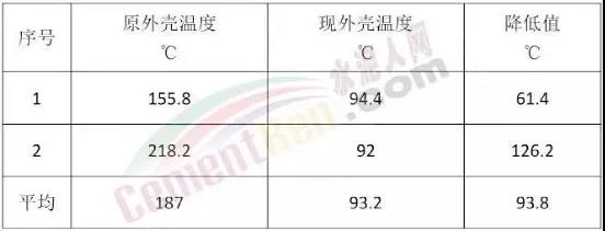 新型納米微晶管安裝到下料管中并投入使用后,在正常生產運行中,用專門的紅外線成像測溫儀器,對更換的部位進行測溫,溫度改善效果詳細見下表。