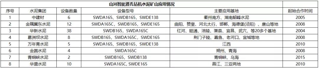 為積極應對市場變化,多家水泥企業主動轉變發展方式,其中,中建材、金隅冀東、華新、葛洲壩等水泥集團從鉆孔爆破、礦山開采等方面著手,選用國內鑿巖鉆機“領跑者”——山河智能裝備股份有限公司(以下簡稱“山河智能”)的鑿巖設備,在環保、智能、提效等方面均取得了有力的突破。