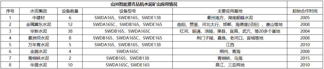 為積極應對市場變化,多家水泥企業(yè)主動轉(zhuǎn)變發(fā)展方式,其中,中建材、金隅冀東、華新、葛洲壩等水泥集團從鉆孔爆破、礦山開采等方面著手,選用國內(nèi)鑿巖鉆機“領跑者”——山河智能裝備股份有限公司(以下簡稱“山河智能”)的鑿巖設備,在環(huán)保、智能、提效等方面均取得了有力的突破。