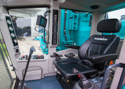 4.人文關懷,安全保障。司機室裝有冷暖空調(diào)、正壓系統(tǒng)、新風系統(tǒng)等,讓操作手遠離職業(yè)病傷害,此外,鉆機上還安裝了急停按鈕、滅火器等,充分保障使用者的人身安全。