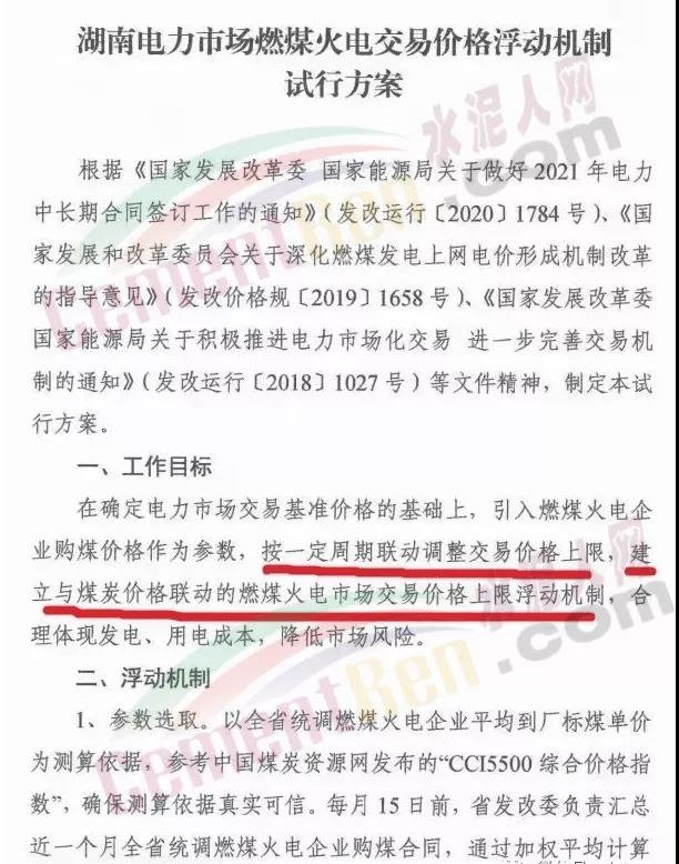 湖南省發展和改革委員會9月27日印發《關于完善我省燃煤發電交易價格機制的通知》及《湖南電力市場燃煤火電交易價格浮動機制試行方案》提到,自2021年10月起,湖南省將在確定電力市場交易基準價格的基礎上,引入燃煤火電企業購煤價格作為參數,按一定周期聯動調整交易價格上限,建立與煤炭價格聯動的燃煤火電市場交易價格上限浮動機制,合理體現發電、用電成本,降低市場風險。