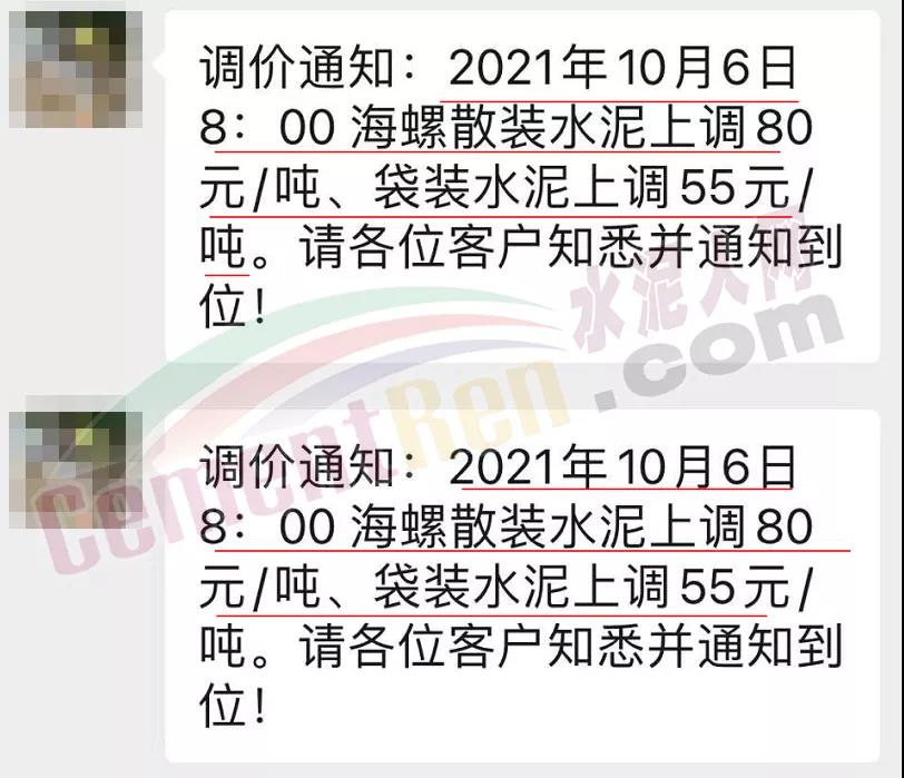 佛岡縣潖江水泥有限公司通知由于原材料市場(chǎng)價(jià)格變動(dòng),經(jīng)公司開(kāi)會(huì)決定,廣州及珠三角洲和佛岡本地區(qū)客戶(hù),從2021年10月7日0點(diǎn)起,公司所有品牌的水泥,32.5R包裝在原價(jià)格基礎(chǔ)上上調(diào)50元/噸,散裝在原價(jià)格基礎(chǔ)上上調(diào)80元/噸;42.5包裝在原價(jià)格基礎(chǔ)上上調(diào)50元/噸,散裝在原價(jià)格基礎(chǔ)上上調(diào)80元/噸。