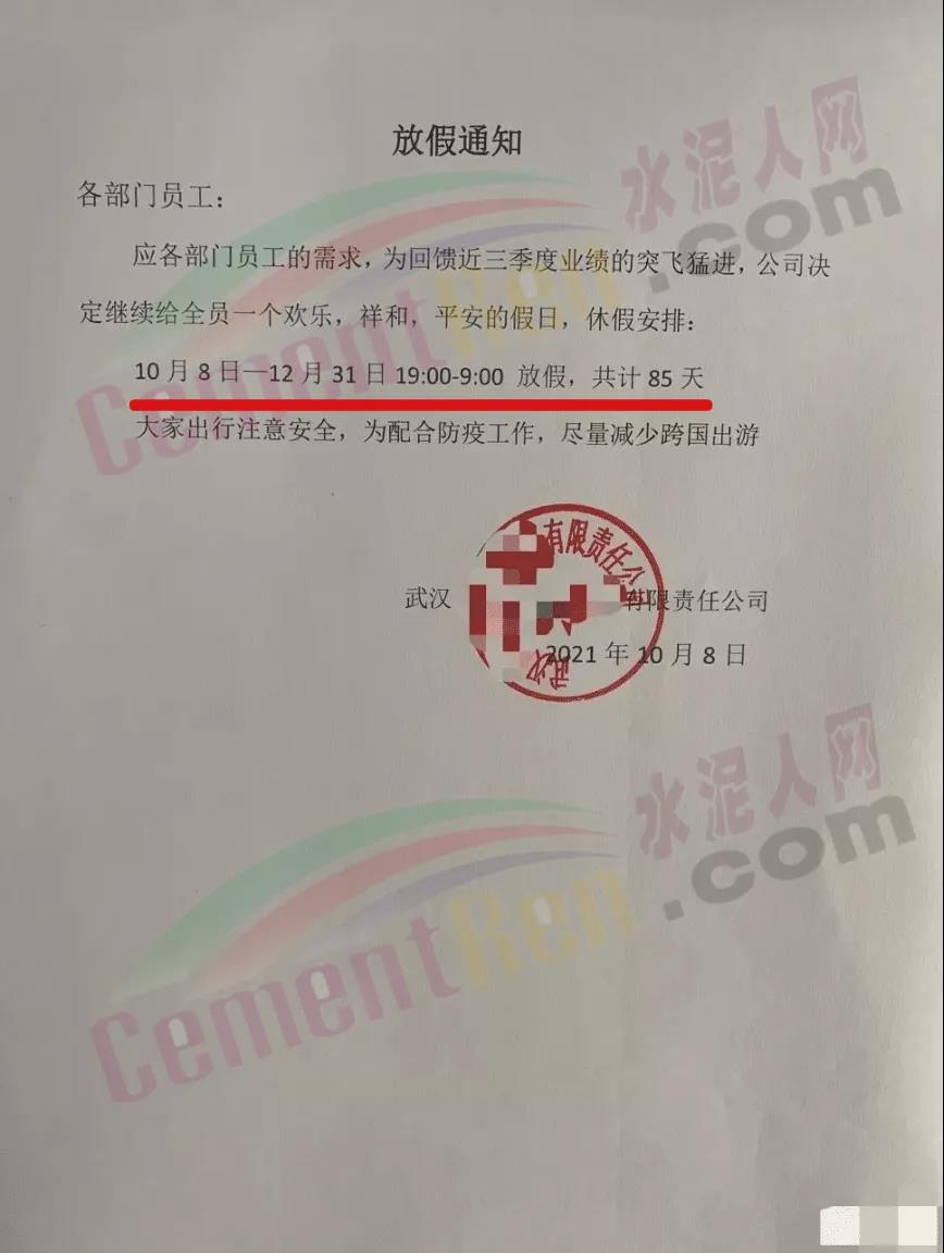 近日,湖北武漢某企業發布放假通知,稱應各部門員工的需求,為回饋近三季度業績的突飛猛進,決定繼續給全員一個歡樂,祥和,平安的假日,休假安排:10月8日一12月31日19:00-9:00放假,共計85天。