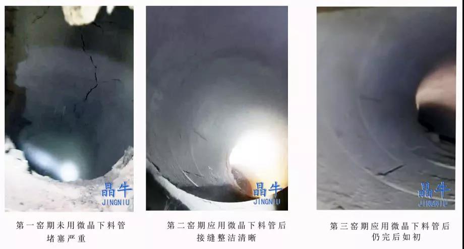 初期應用后,福建該水泥企業對晶牛微晶微晶材料有了充分的認識,并將其預熱器系統的下料管、煙室、縮口、分解爐等關鍵部位全部改用為晶牛微晶微晶裝備,今年3月投產后顯現了如下優勢: