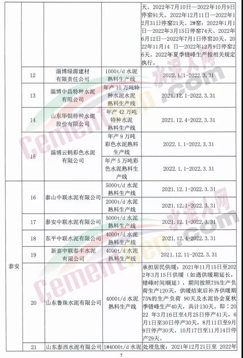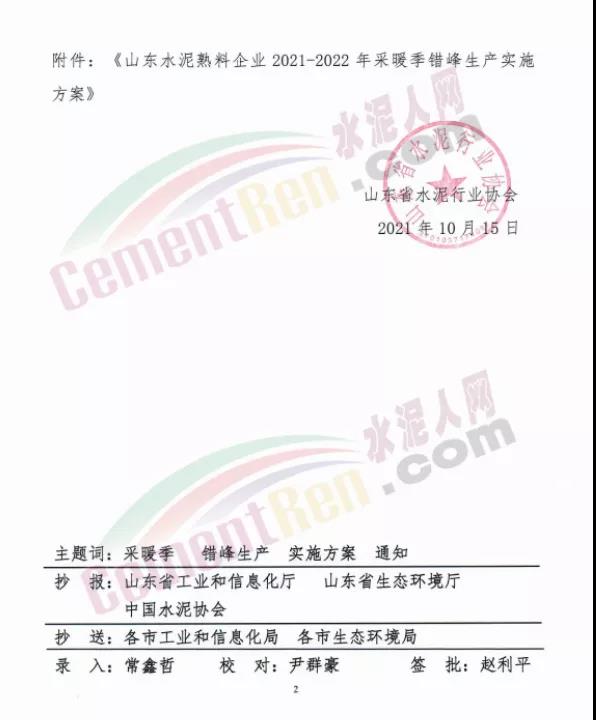 10月15日,山東省水泥行業協會發布山東水泥熟料企業2021-2022年采暖季錯峰生產實施方案要求,山東水泥熟料企業的所有水泥熟料生產線2021年12月1日0:00-2022年3月31日24:00實施錯峰生產。