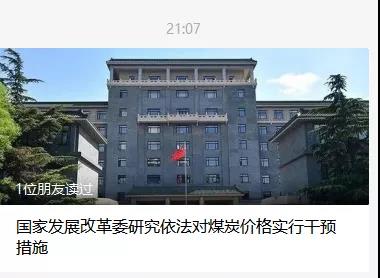 19日21:07分,《國家發展改革委研究依法對煤炭價格實行干預措施》提到發改委將研究依法對煤炭價格實行干預措施,促進煤炭價格回歸合理區間。