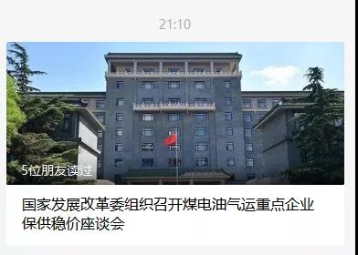 21:10分《國家發展改革委組織召開煤電油氣運重點企業保供穩價座談會》,提到發改委將推出八大舉措促進煤電油氣運重點企業保供穩價。