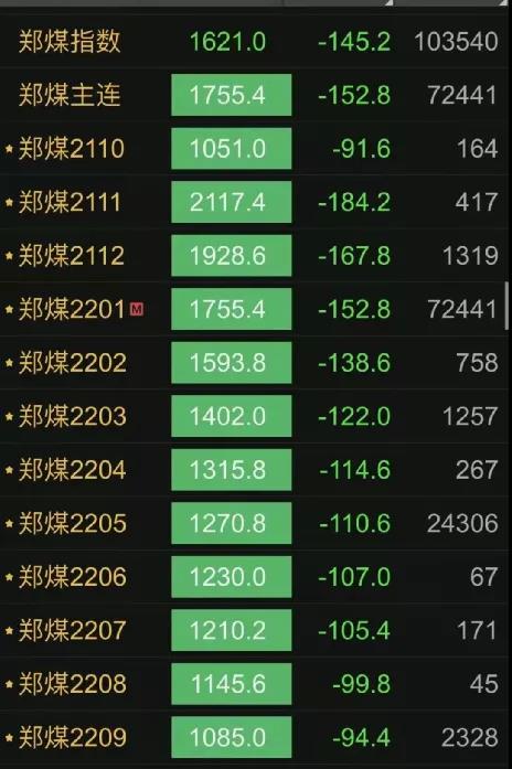 據統計,截至23:00,共有39個合約跌停。動力煤更是全合約(12個)封死跌停板!