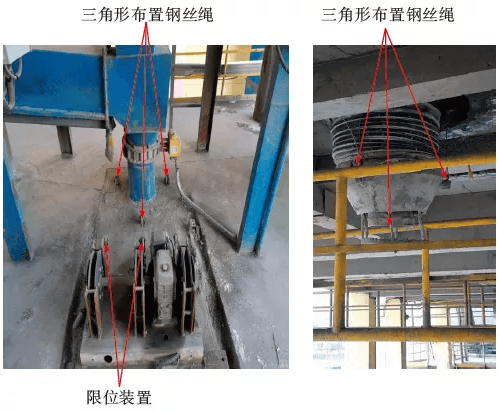 1.設(shè)備更新,將原散裝機料筒升降裝置全部拆除,保留裝載頭及下料筒,更換為新型高效無塵散裝機,升降結(jié)構(gòu)是由3根鋼絲繩成三角形均勻布置在料筒外側(cè),而且設(shè)計了升降限位保護裝置,保證了鋼絲繩使用壽命,解決繩孔冒灰問題,降低了職工勞動強度;