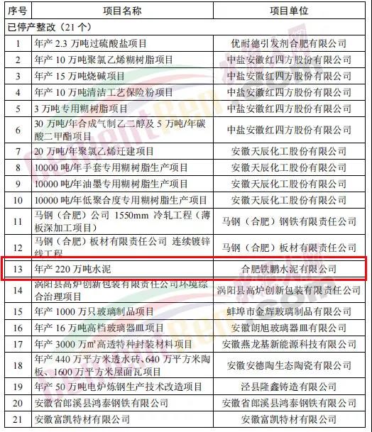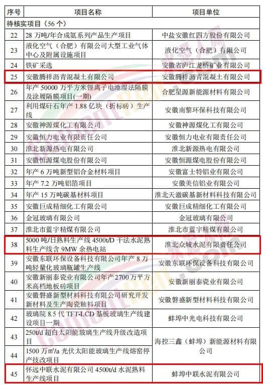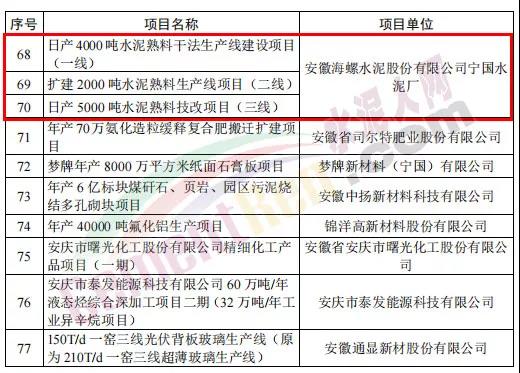 ?全省存量“兩高”問題項目梳理排查表中包含海螺水泥、南方水泥、鐵鵬水泥、眾城水泥旗下多個項目。