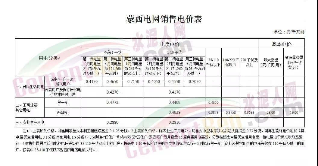 內蒙古發改委提出《關于明確蒙西地區電力市場交易用戶保底電價的通知》中的保底電價比原有電價上浮了80%。蒙西的新保底電價如下表所示: