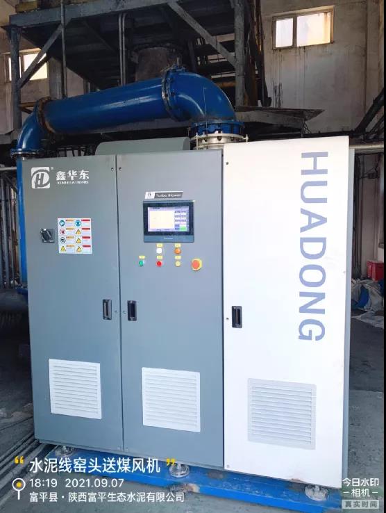 陜西富平生態水泥有限公司是陜煤化集團陜西生態水泥股份有限公司所屬全資子公司,此前,其5000T/D水泥生產線上使用的4臺羅茨鼓風機(其中2臺功率為250KW,2臺為185KW),存在嚴重的能耗高、噪音大且經常需要維修保養的問題。為貫徹環保、節能、可持續發展的經營理念,綜合比較多款風機后,富平生態水泥最終決定決定采用山東華東風機有限公司(以下簡稱“華東風機”)的磁懸浮高速離心鼓風機對原有的羅茨風機進行更換。