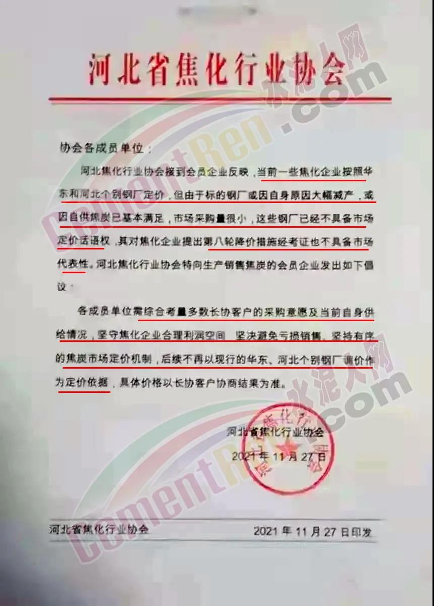 河北省焦化行業協會發文稱,協會接到會員企業反映,當前一些焦化企業按照華東和河北個別鋼廠定價,但由于標的鋼廠或因自身原因大幅減產,或因自供焦炭已基本滿足,市場采購量很小,這些鋼廠已經不具備市場定價話語權,其對焦化企業提出第八輪降價措施經考證也不具備市場代表性。河北焦化行業協會特向生產銷售焦炭的會員企業發出倡議: